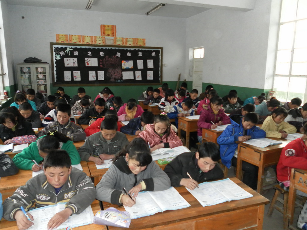 "老师来了,快坐好。"一个同学喊。