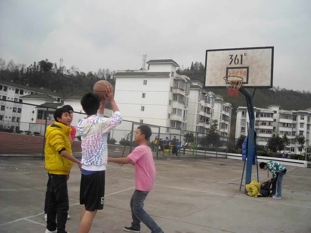 看啦!那些在篮球场打球的男生,你看那满脸的汗水,飞快的速度,强劲的冲击力,敏捷的身手,完美的投篮,这一切显得那么优美,自由,轻松。他们此刻好像是天空飞翔的小鸟,令人神往,令人佩服。虽然学习使他们绞尽脑汁,但一到这里便充满了娱乐精神。