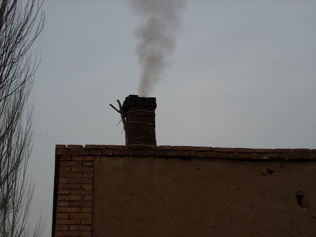 快看,烟囱正在唱着欢快地歌.它的歌声正在家乡上空回荡. 朋友,有时间了来我家作客,我们一起在炕上学习.