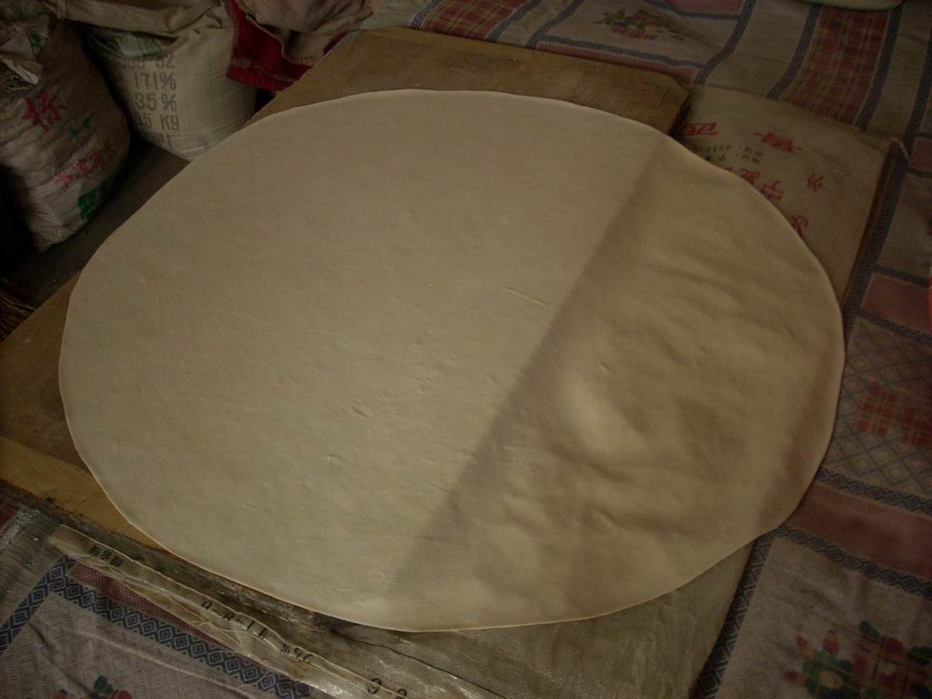 最后一团面就变成又圆又薄的一张面了,你看这多像一个圆月亮啊。
