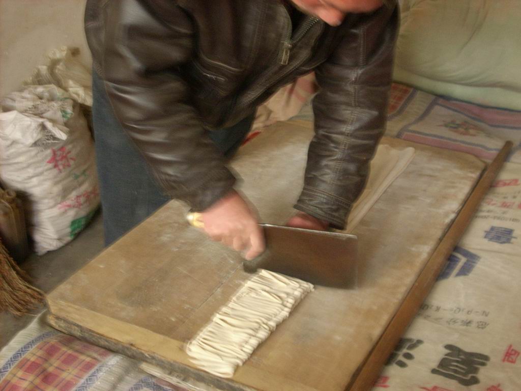 等到最后,将面切成细细的面条,这样面就可以随时食用了。
