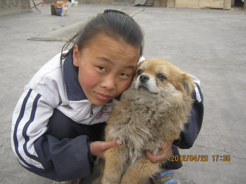 还有一次,我和帅帅正在玩追踪游戏,帅帅在在地上跑着追我,而我呢?则是骑着自行车。望着帅帅可怜的样子,我不忍心便停下来抚摸着帅帅的头。帅帅望着我露出了鲜花般的笑容,我看了看他便不由的笑了出来。看我们俩姐妹玩得多开心呀!怎么样羡慕我们之间的感情吧!