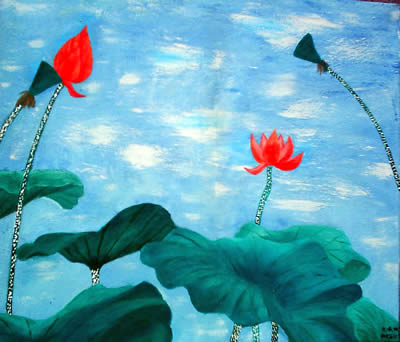 采莲之处采莲人,欢歌笑语露心声。艳男美女默专情,情到深处浪无痕。浮萍与水同想生,树离根土难自成。男欢女爱皆常事,莲花深处现余情。