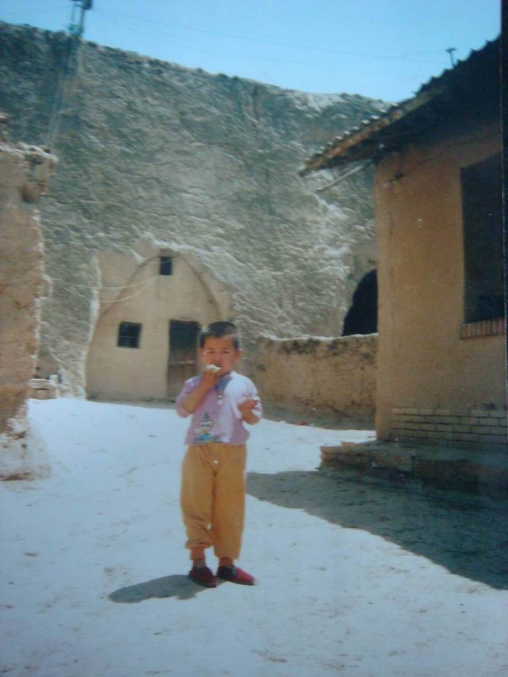 这就是我的家,家里有三亩二份地,一头"喂不肥"的牛.一间平房,几个土窑子,一个没有大门的破旧的院子.唯一可以让我的妹妹弟弟感到欣慰的是有几棵果子树,在硕果累累的时候解解谗.