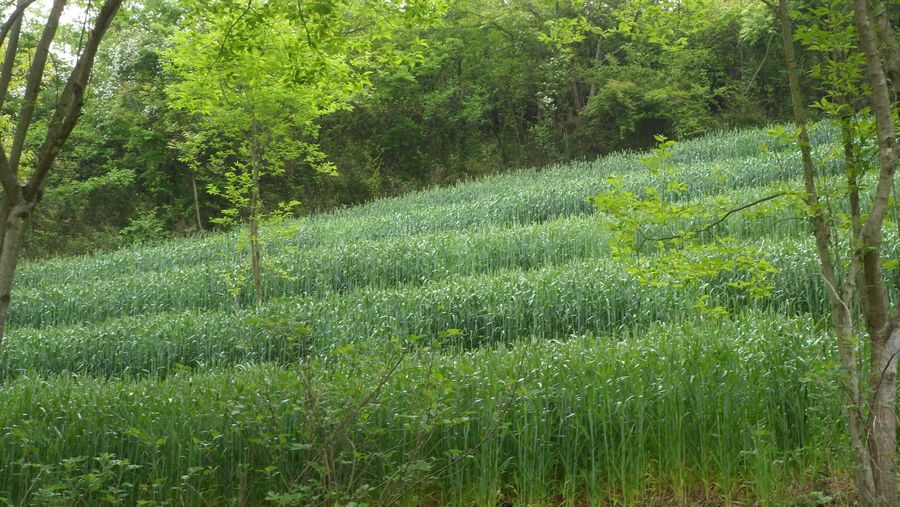 到了半山腰,这里的景色更加迷人,首先映入眼帘的是梯田一样的麦田,田边长着小花朵,红的、粉的、白的、黄的、、、、、、,好像给麦田系上一条五彩的丝带。山下有一条清澈见底的小河,小鱼小虾在快乐地游来游去。老人在河边垂钓,小孩在河边嬉戏。河岸上绿油油的草坪里镶嵌着许多小野花,好似一张软绵绵的地毯。树枝上的小鸟喳喳叫着:"这里真美!这里真美!"