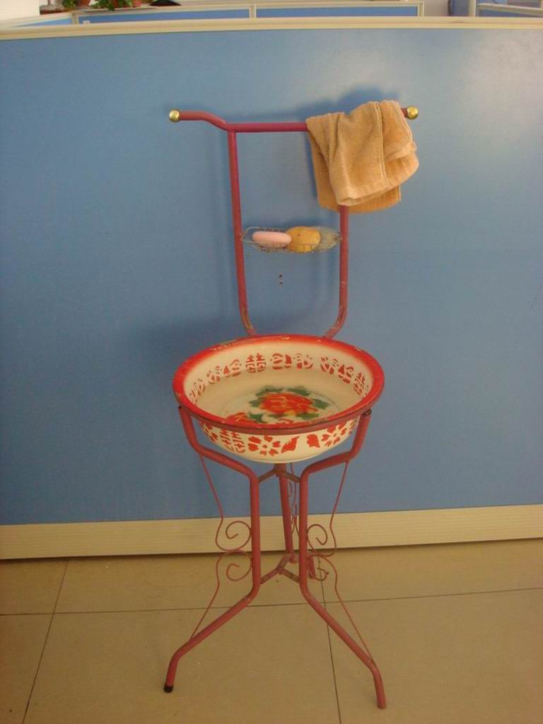走进高一年级教师办公室,首先进入眼帘的是一付脸盆架,这在学校里可是必不可少的,教师们每次上完课回到办公室时,两手都是粉笔灰,必须清洗以后再进行备课或批改作业,所以里面每天都有办公室值日的教师及时更换的净水方便大家洗手。