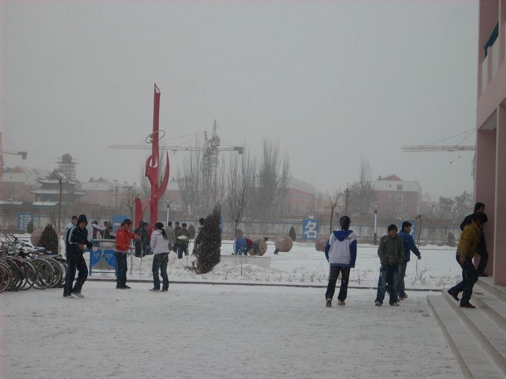 在茫茫白雪中,在寒冷的气候下,同学们的活泼,好动并未受其影响,反而精力更加旺盛,看雪中有奔跑的,有玩耍的,一派和谐。洒脱之象,是那样自然,陶醉了玩雪的,丝毫未现出雪的冰冷,奔跑于雪面上的学生也丝毫不感到雪上的平滑,因为爱充满了校园,他们不但有生活的喜爱阳刚般的正气。这充满了对学校的爱。对学生,朋友的关爱。