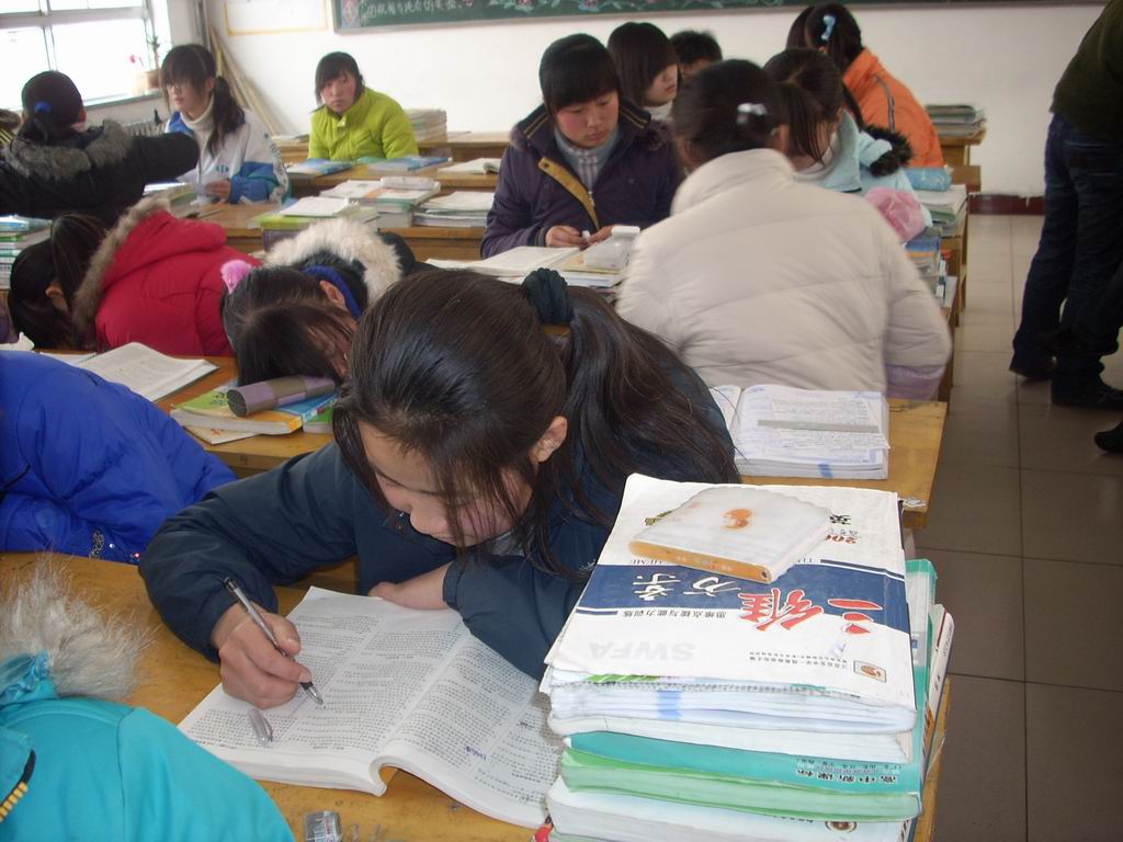 她学习很认真,每天总是趴到桌子上学习。下课了,别的同学都在休息,她还在做数学题。