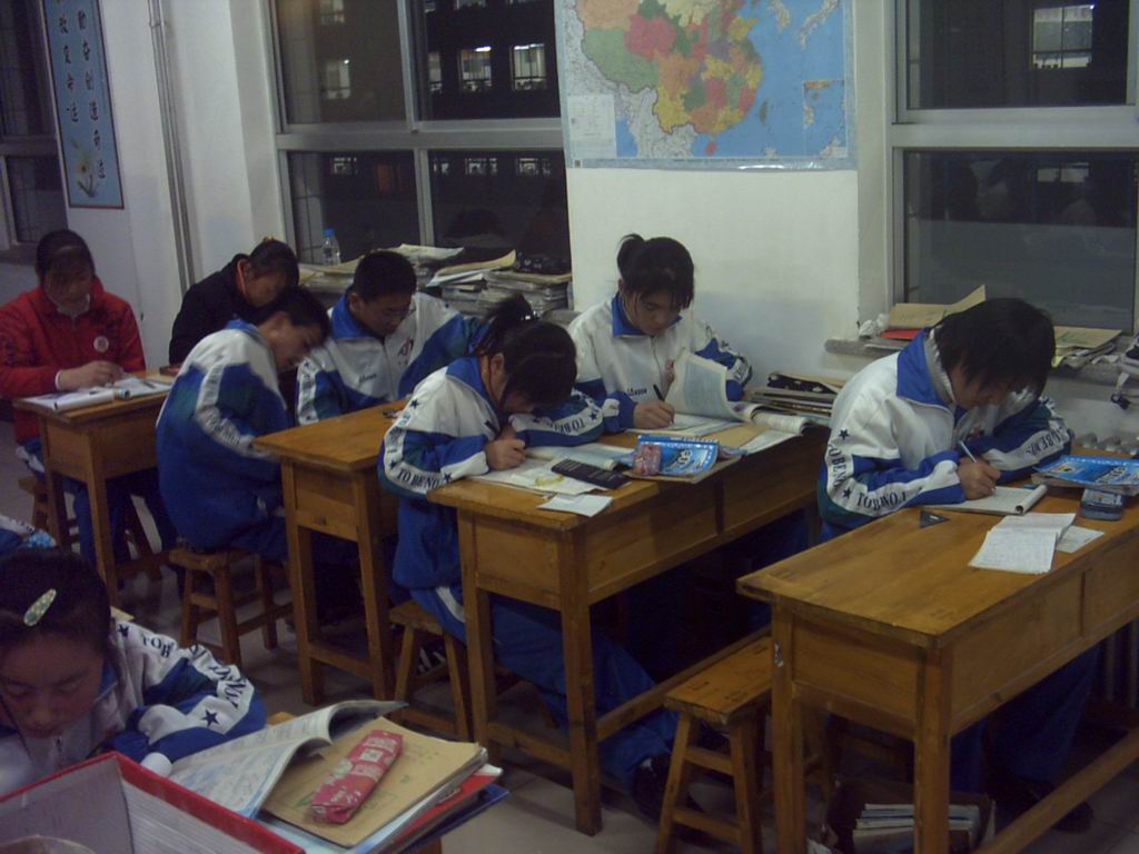 每天的学习任务都很繁重.只有晚自习是我们自由支配的时间,也是我们对这一天的学习巩固的时候了。 学校每晚七点上自习, 但其实大部分同学很早就已经进入学习状态开始学习了 。