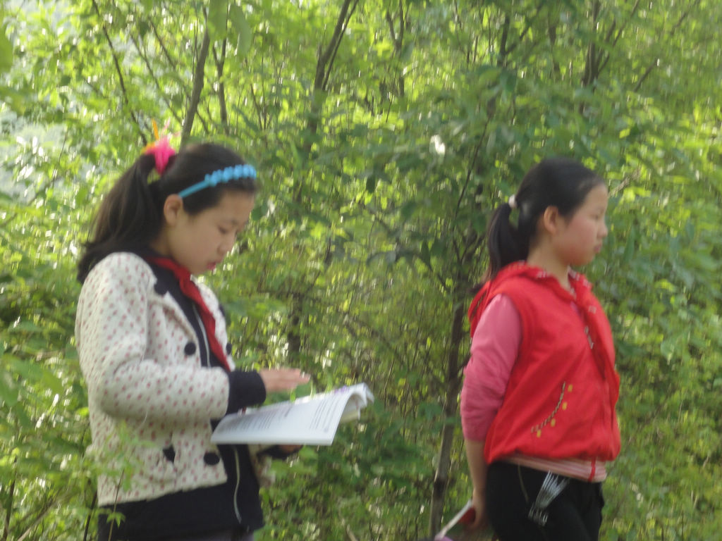 我们来倒山脚下,只见到处都是一片郁郁苍苍、绿油油的景象,还有一些不知名的小花。微风吹来,我们闻见了麦子的香味。我们来到了一个平地,那里树木茂密,有丝绵树、松树······王老师觉得这是个朗诵的好地方,于是我们就开始朗诵了。