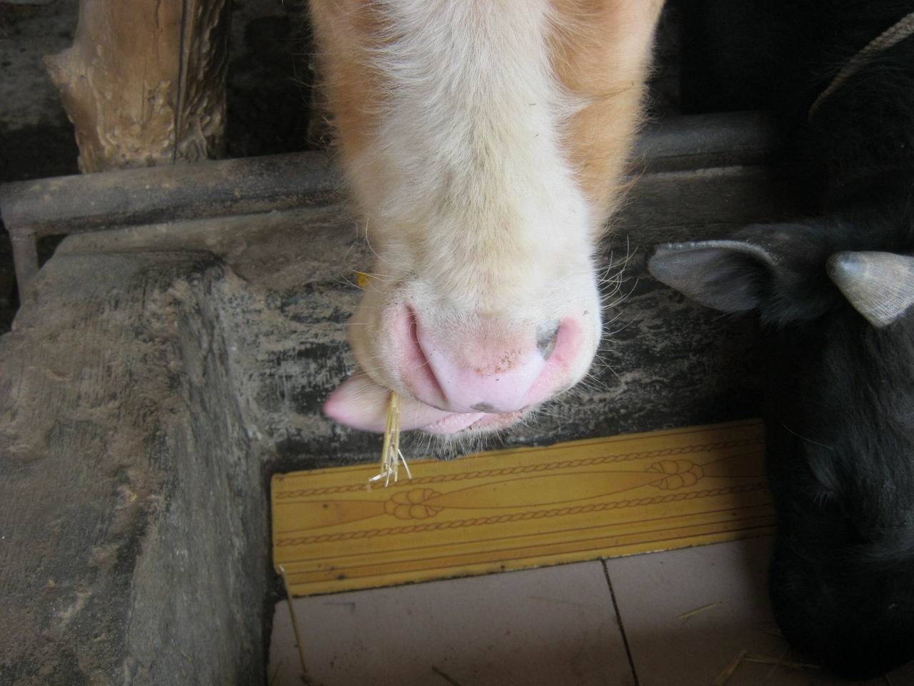 小黄牛每天没事的时候就要"倒嚼",就是把吃进去的东西再嚼一遍,嘴巴一动一动的,满嘴都是白沫。四条粗壮的腿,像是四根小柱子,支撑着他那圆滚滚的身躯,向前跑的时候特别有趣。