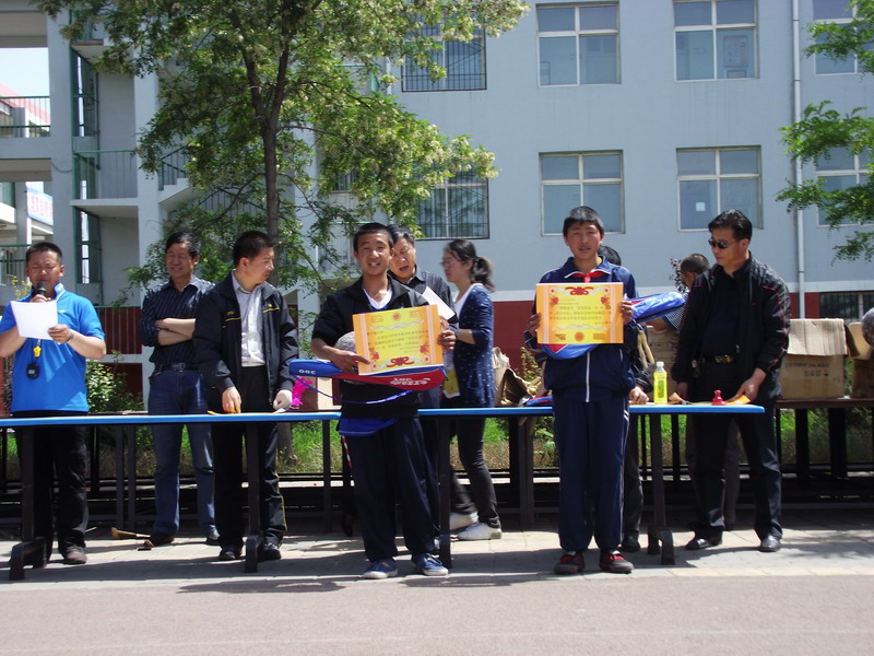 早晨八点半运动场上已是人的海洋了,过了一会儿就开始比赛了,第一个是"同舟共济"我们班拿了七年级组的第一名后来就是"袋鼠跳","滚轮胎"……许多许多的活动。该发奖了,许多班级都露出了灿烂的笑容,只有个别班级愁眉苦脸。