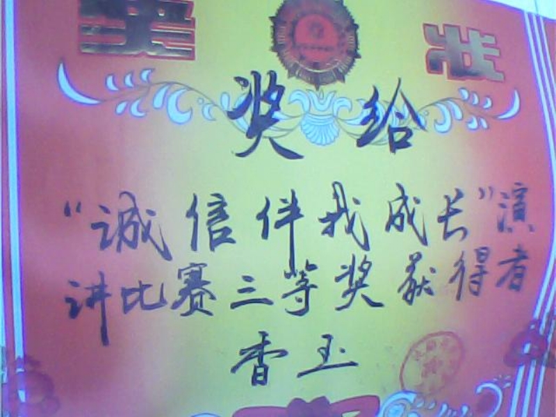 虽然在这次比赛中我只得了三等奖,但我依旧很高兴,因为这次比赛的最终目的在于唤醒我们青一代的思想,让诚信活跃在我们当中,不是吗?