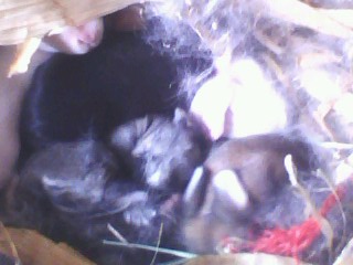 之后的几天,兔子一直用毛把兔洞门封着,我按捺不住自己的好奇心,用小棒把兔毛挑开了。就在这时,兔妈妈一下子扑了上来,疯狂的撕咬着木棒。爸爸告诉我窝里一定有小兔子。于是我便再没打扰它们。又过了几周,小兔子从窝里跑了出来,我终于亲眼目睹了这小兔子。再过几周它还会再下一窝小兔子。