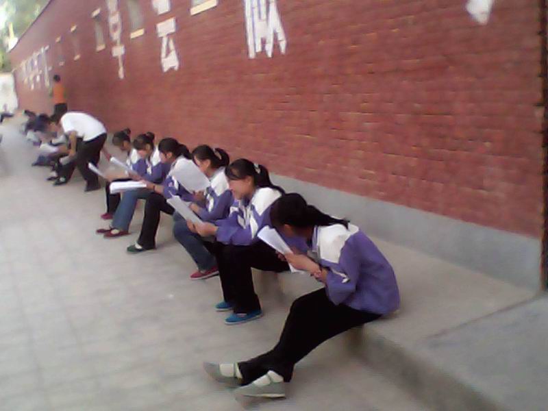 每当下午时刻,每个教室的门口都会有许多同学坐在一起。讨论着学习中的困难,分享着学习的快乐,巩固着已学过的知识,一步步地理解着新的知识,进下一步为自己的目标奋斗着,努力着,欢乐而又充实地度过自己的每一天。