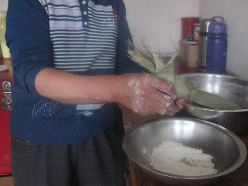 在家乡,端午节的前一天晚上,家家户户都要浸泡好包粽子用的糯米、粽叶。第二天,也就是端午节那天,一家人围在一起包粽子,可有意思了。我看着妈妈和奶奶把那粽叶卷成漏斗的样子,然后将浸好的糯米塞进去,最后一包扎就好。我在一旁看着,手早就痒痒了。趁着妈妈不注意,我拿起一片粽叶就模仿包了起来,先是卷成漏斗状,哎呀!真是漏斗,米撒了一地。……