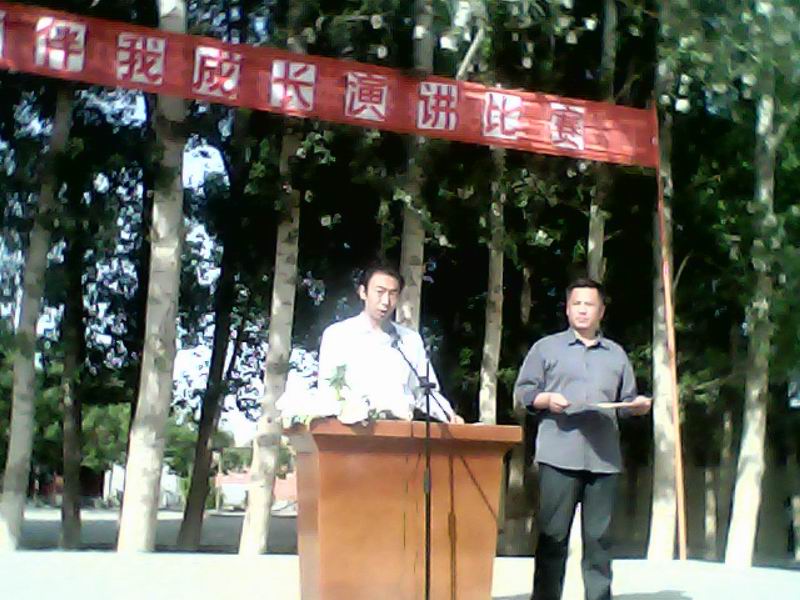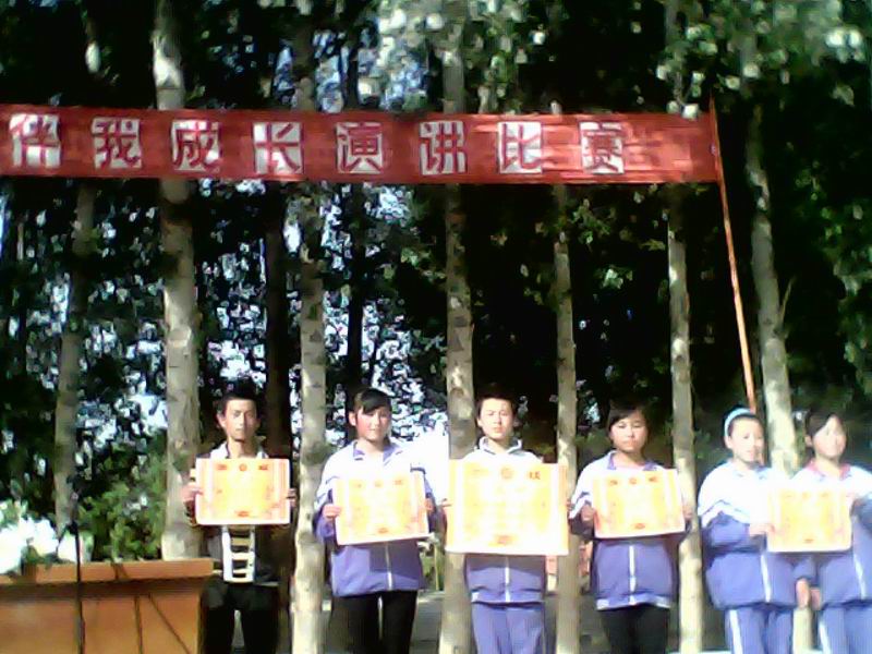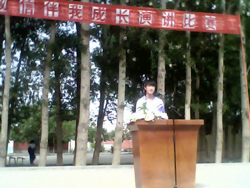 今天下午,我们学校举行了"诚信伴我成长"为主题的演讲比赛。选手们那标准的普通话,精彩的内容,宏亮的声音,博得了阵阵掌声。看,同学们听得多认真呀! 笑得合不上嘴的是七年级二班的董旭龙,也许是选手们的演讲太有趣了吧!