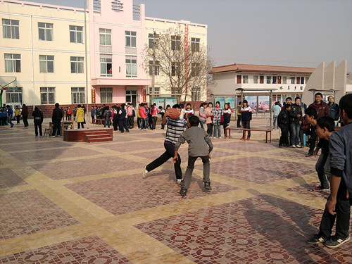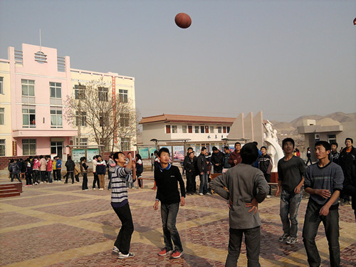 在一次体育课上,老师让我们打蓝球,我们非常高兴,虽然打得没有专业运动员那么棒,但是我确认为我们是永远最棒的。