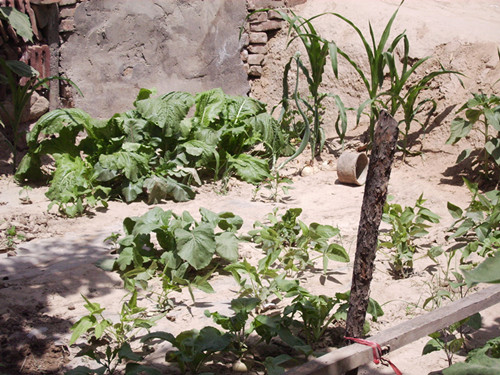看,菜园里的那两棵大树像是那些蔬菜的"守护神"在菜园里面守护着它们。我用"生机勃勃"来形容菜园里的一切。的确不过分。每天起床,看到这一抹绿色,给人以宁静,和谐的感觉。它不但供我们欣赏,还可以让我们乘凉,吃新鲜蔬菜。虽然我家的菜园不是太大,但它是一块宝地,因为它孕育着许许多多绿色植物的生命。现在的果实和蔬菜尚未成熟,但它充满着绿色,代它到了秋天,果实累累,疏菜成熟。真是美不胜收。