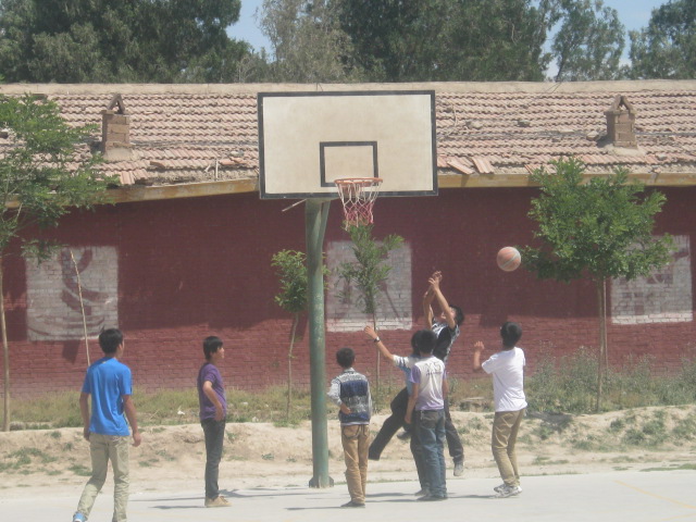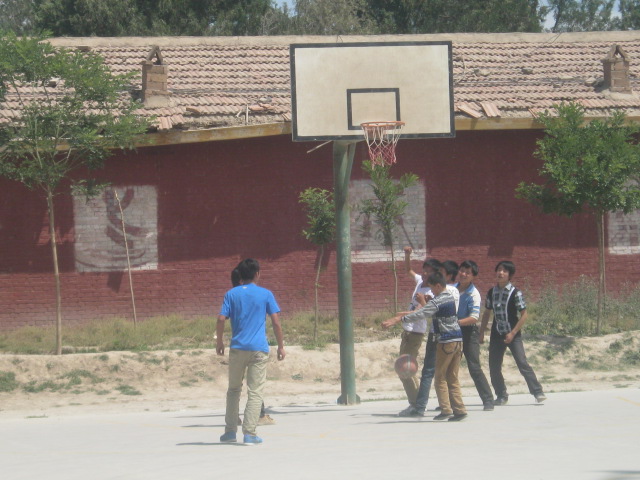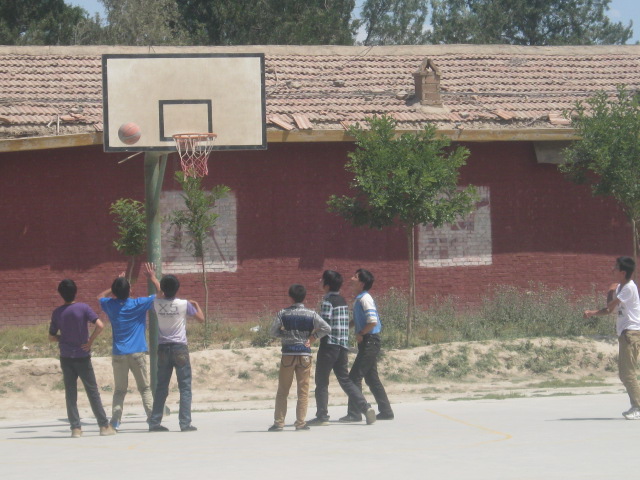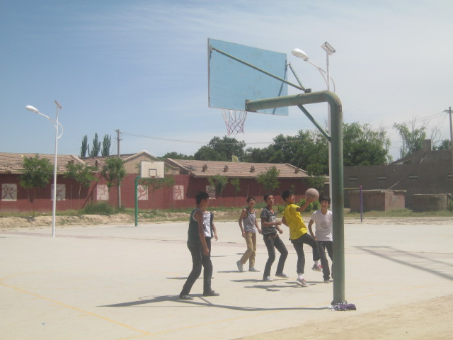 今天是星期六下午,烈日当空,我和小伙伴们拿着篮球到学校里打篮球。