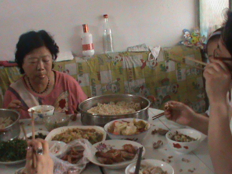 过了一会儿,我看见爷爷吃粽子的摸样很搞笑,然后我就从屋子里拿来照相机给爷爷照相,但是照相时把奶奶剥生菜的情景给照上了。我让家人看照片,他们都哈哈大笑。