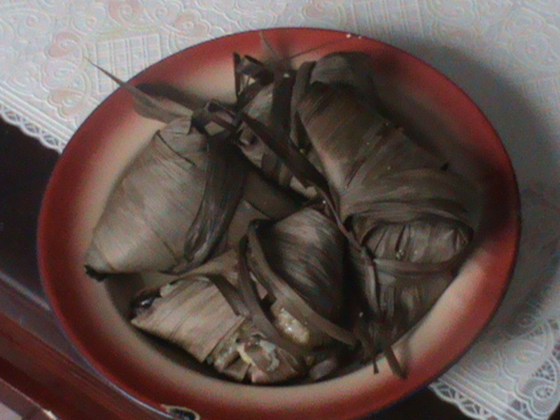 今天是端午节,奶奶给我们煮好了粽子,有江米的,八宝米的和黄米的,还有一样粽子是肉的。