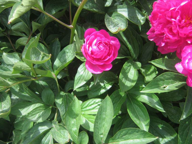 我立刻被眼前的美景吸引住了,我们家的花园里也有芍药花,可只有一棵,每次开花都会让我驻足不前,可眼前的芍药花何止千多,这景象真是壮观。芍药花是灌木植物,冬天会枯萎,春天就发芽,枝叶非常茂盛,密密的,挤挤挨挨的在一起,就算不开花光欣赏这些叶子也是一种享受了。