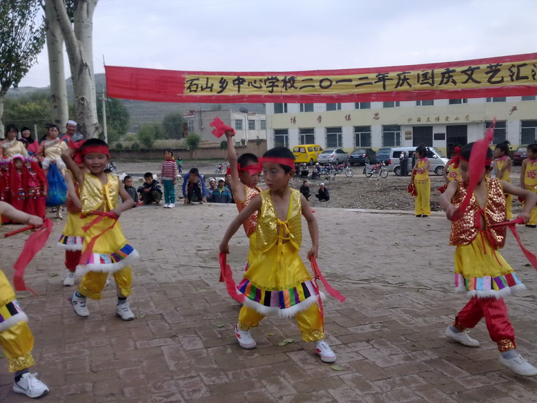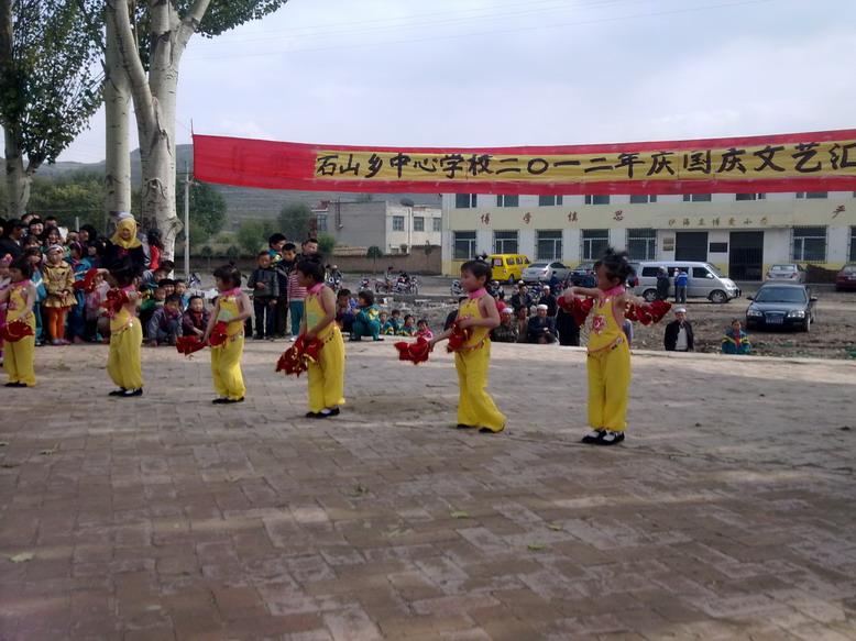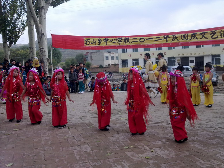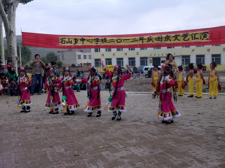 10月1日是我们伟大新中国母亲的生日,我们学校隆重举办了庆国庆文艺演出,连幼儿园的小朋友都来参加演出,这不,小朋友们带上了他们的精彩舞蹈,藏舞。虽然他们的举手投足都很稚拙,但是他们的舞蹈却很精彩,每一个小朋友都把他们的热情表现在这粗犷的舞蹈里了。