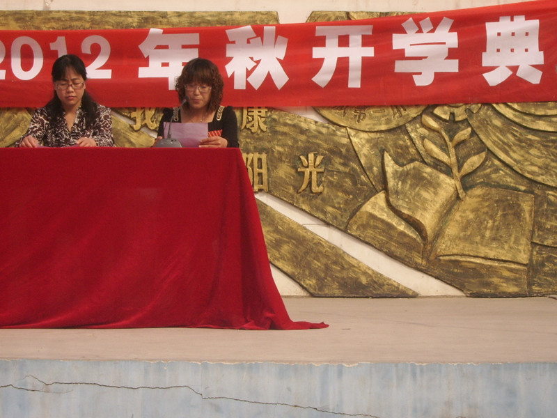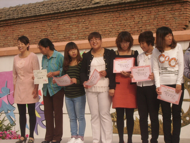 首先鼓乐队演奏,鼓乐队演奏完毕,校长做了主要讲话,几位老师代表讲话,还给十六位优秀教师发了奖状。老师们都很开心。