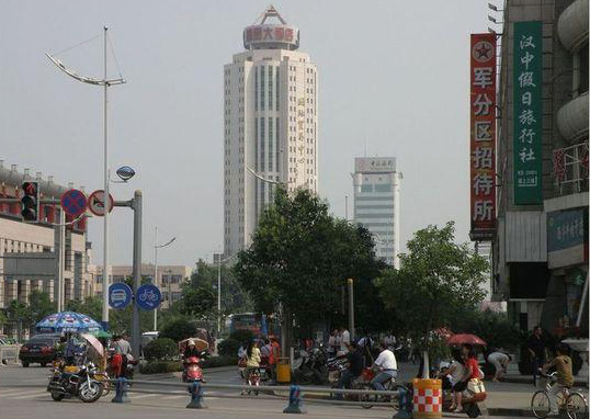 来到天汉大道尾段,你会看见汉中最大的广场中心广场,位于汉中市的南边,占地面积2万平方公里,四周绿色的铁栅栏,栅栏里栽了一排绿色的小矮松,进入广场便可看见一条由白砖铺成的几百米长的通道,通道的右边是一排苍松劲柏,左边则栽了一排桃树和杏树,通道不远处有几座仿汉的凉亭和一些锻炼设施,是人们乘凉.玩耍.休息的好地方。