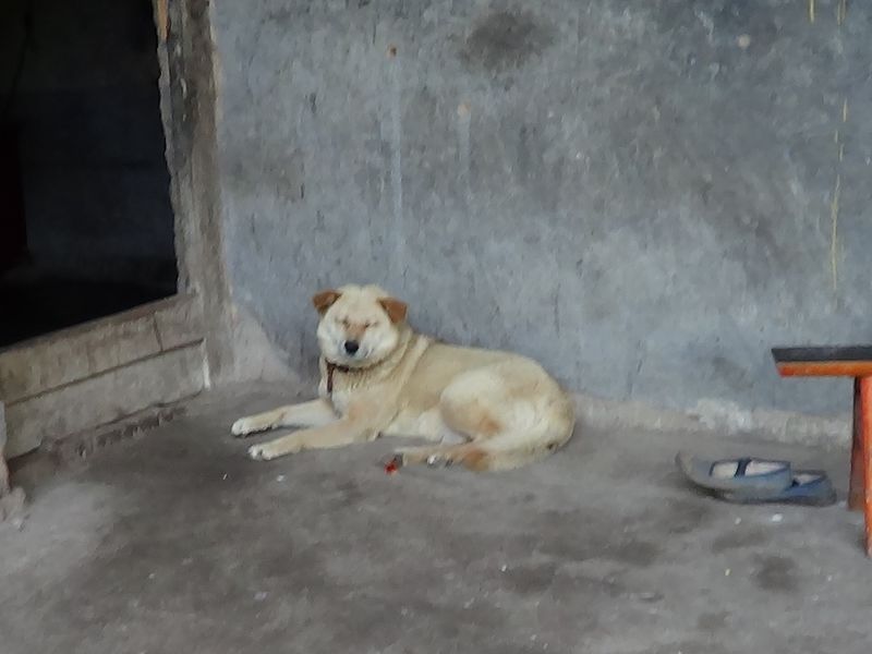 有些时候,大白狗也会跟着爷爷去干活。爷爷在地里干农活,它就静静地坐在地边上看,守着自己的主人。偶尔有人从这里经过,它也会“汪汪”两声,告诉爷爷有人从这里经过。爷爷的活儿干完了,大白狗又跟在爷爷的身后,在夕阳中和爷爷一起回家。有一个邻居和爷爷开玩笑说,“你还可以啊,出门还跟着一个‘保镖’呢”,引得一阵哄堂大笑。闲着的时候,大白狗就静静地卧在门口,等待着爷爷把一件件家务活收拾完。卧得太久了,也不免眯起眼睛,打会儿盹,只要有什么响动,它又立即竖起了耳朵,睁开眼睛,马上警觉起来。