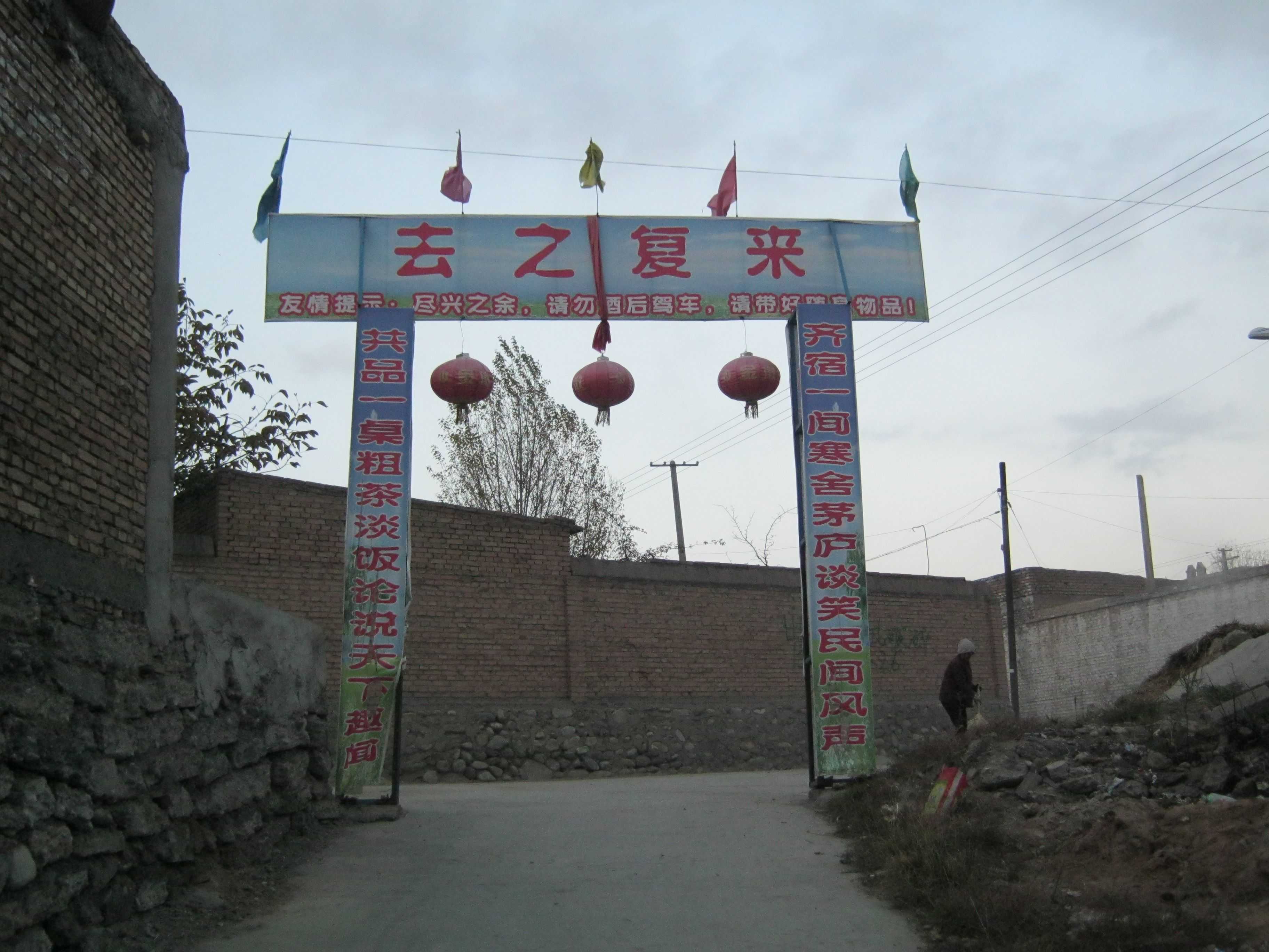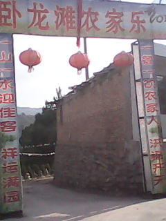 在农家乐的大门口里外都有写对联,大门外面写的对联是"一山一水迎佳客 祥运满园;一餐一饮农家人 洪福齐天"。横批是:"卧龙滩农家乐"。里面的对联是"共品一桌粗茶淡饭论说天下趣闻,齐宿一间寒舍茅庐谈笑民间风声",横批是"去之复来"。我们的语文课里专门讲过对联,我觉得这两副对联写在茶园门口非常贴切。