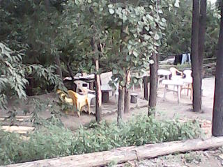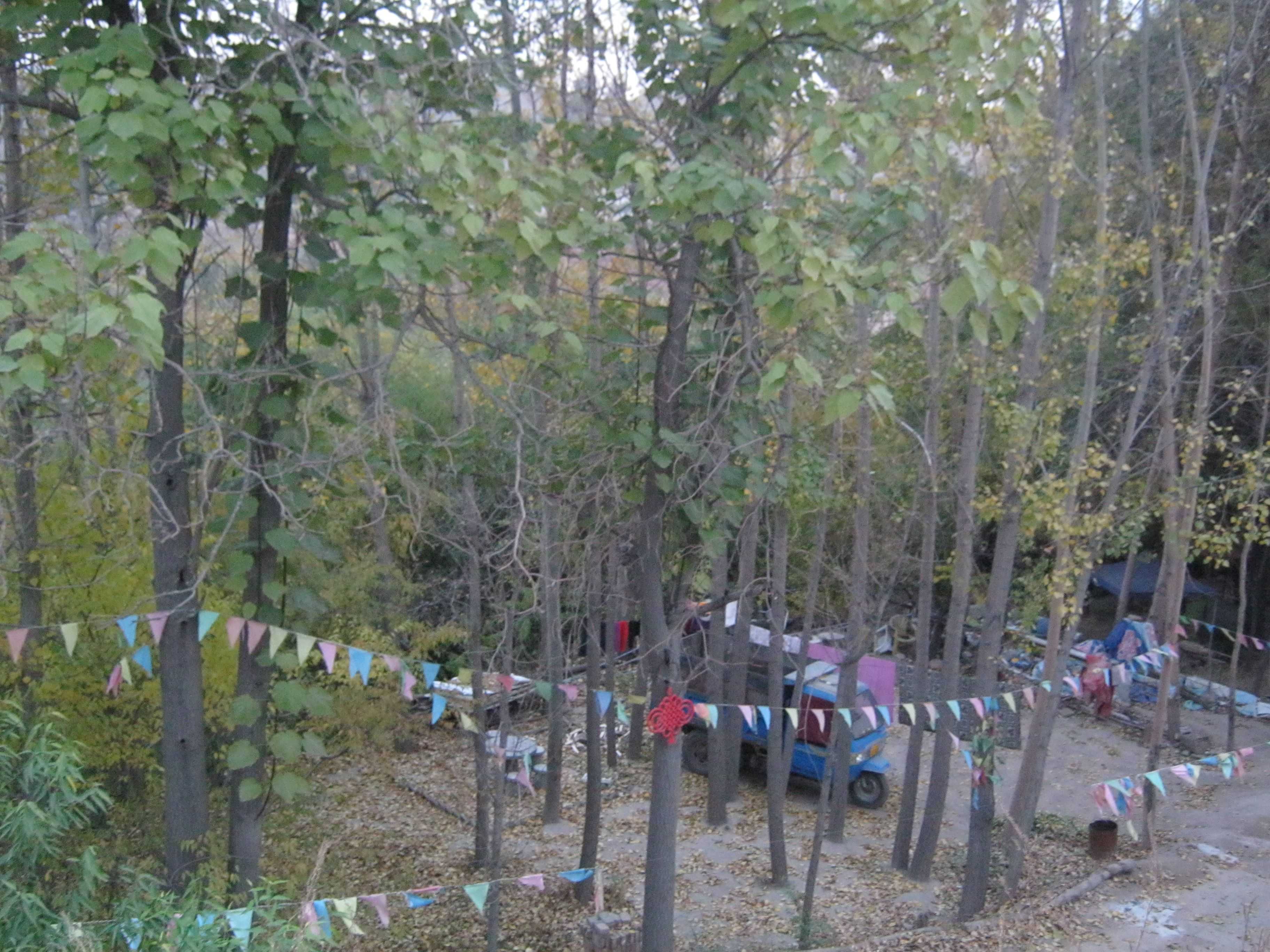 院子里的树很多,而且大多是果树,春天果树会开出白的梨花、粉的杏花和粉白的李子花,不过那时候天气还不够热,去茶园的人也不会太多。随着天气渐渐变热,去茶园的人也多了起来,这时候果树的花都已经变成了一个个绿色的小果子,树木也更加枝繁叶茂,郁郁葱葱。夏天的下午,茶园里的客人总有几十个,除了成年人会在这里打牌吃饭,也会有一些小孩子在这里玩,因为这里是个休闲、娱乐的好地方。