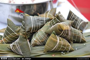 傍晚时分,大人们将头天准备好的粽叶,作料拿出来,和家人们一起包粽子。先将粽子平放在手掌,再将糯米和一些蜜枣,花生类的作料放入叶中,然后以三角为形的包起来,用丝线扎好,就可以放入锅中蒸煮;等到第二天,就可以享受这美味的大餐喽!