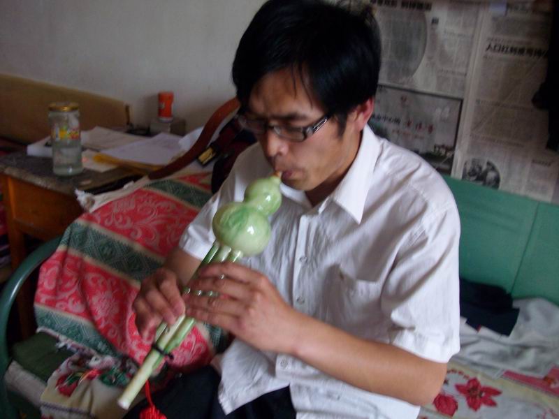 他还是乐器爱好者。弹风琴、手风琴、吉它,拉二胡,吹口琴、葫芦丝等,真可谓棋琴书画,无所不精。
