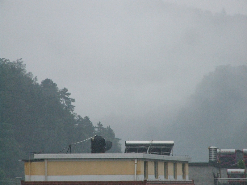 雨滴凉凉的,滴在手上冰冰的,带一股莫名的寒气,把远处的山都染成了灰白色。撑起一把小花伞,走在雨中,看着小雨滴从伞落下来,抚摸着微微有些冷的空气,这便是一种另类的享受。站在雨中,有一种强烈的想与雨亲近的感觉。抛开雨伞,在雨中尽情的奔跑,与小雨珠嬉戏,小雨珠从我的脸颊上滑落下来,在我的发髻上玩耍,顺着我一缕缕的头发依依不舍的滑落,直至我的眼眸,我的指尖,我的脚下。闭上眼睛,我能听到雨儿的心声,我想;那肯定是雨儿在召唤大地的万物,让他们欢悦,让他们聆听雨的脚步声。