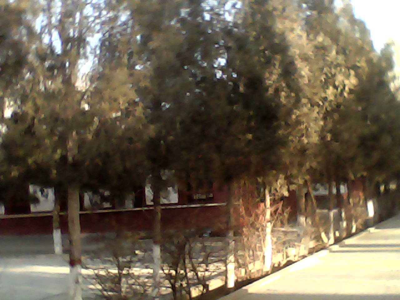 秋天刚走,冬天就来到了校园.树上得叶子都落干了。光秃秃的,失去了夏天那遮天蔽日的风姿。只有那排青松,依旧那么苍翠,笔直地耸立着,像两排穿军装的战士。