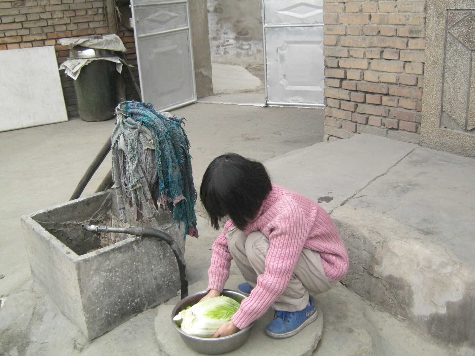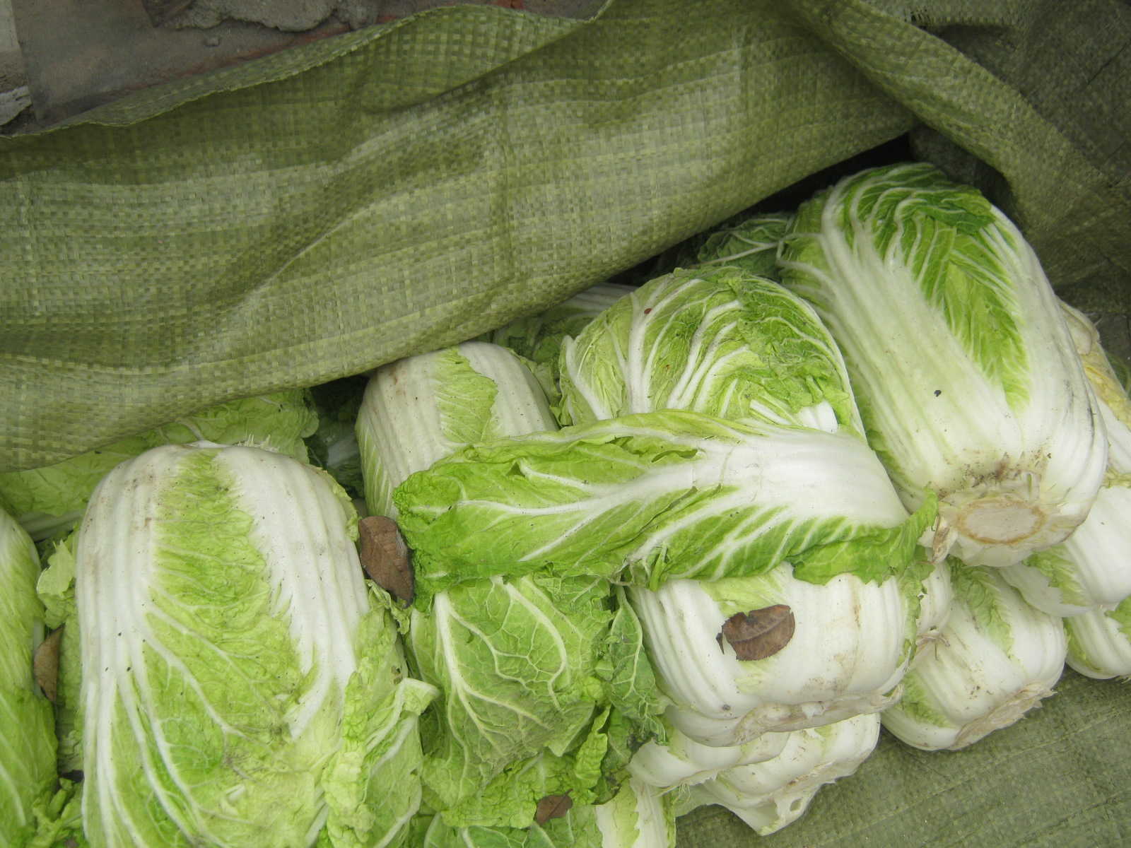 买来的白菜不能直接腌,要放在屋檐下晾晒几天,我们把买来的白菜堆在墙边,每天太阳晒着它们,很快外面的叶子就不那么新鲜了,白菜也蔫了许多。