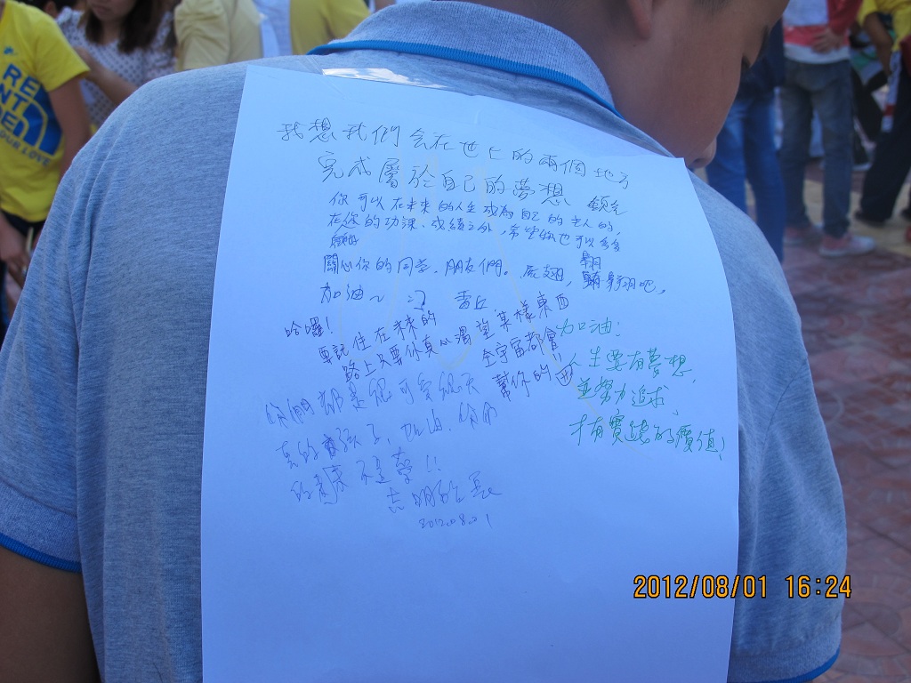 仅仅的十天,里面包含了感动、欢乐、泪水、挫折。而时间特将那一刻永远的停留在了那瞬间的笑容之中。此时此刻,我在这夏令营的结束仪式中,看到了所有同学不舍的泪水。可是我却满面的笑容。我知道,你们将对我的做法会感到不解。但我想说;"这是我对远方哥哥姐姐最好的回报。"因为,我的心中永远铭记着这样一句话。记着,用自己的微笑坚强的活下去。