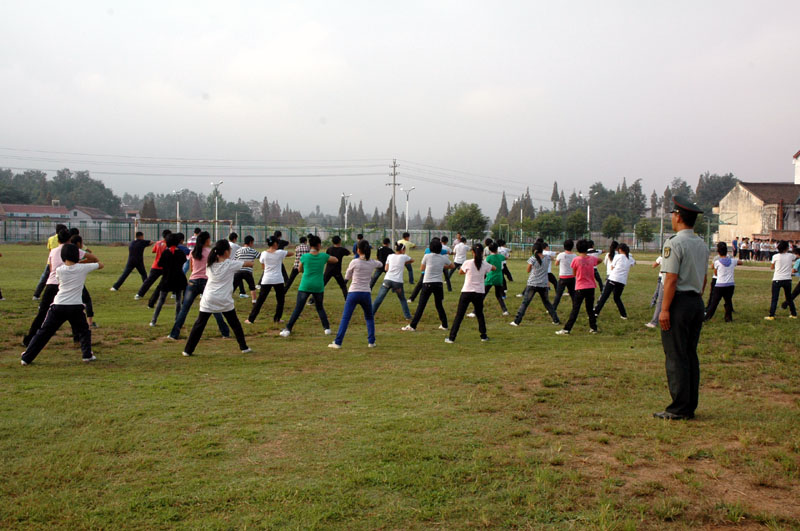 教官教我们一句话:掉皮不掉肉,流血不流汗。我们在运动场上挥汗如雨,尽心的练习。刚刚的时候,我们每个人都很期待,毕竟是第一次到正规的严格的军训,然后当我们第一次训练时,那种严格的动作要求,让我们缺乏锻炼身体很难适应,一个下午就把我们就的腿酸的站不稳,我们有点动摇了。两天后我们适应了军人的生活,但是我由于身体的不适,告别了训练场,虽然我只是军训了5天便退了出来但是使我难以忘怀!