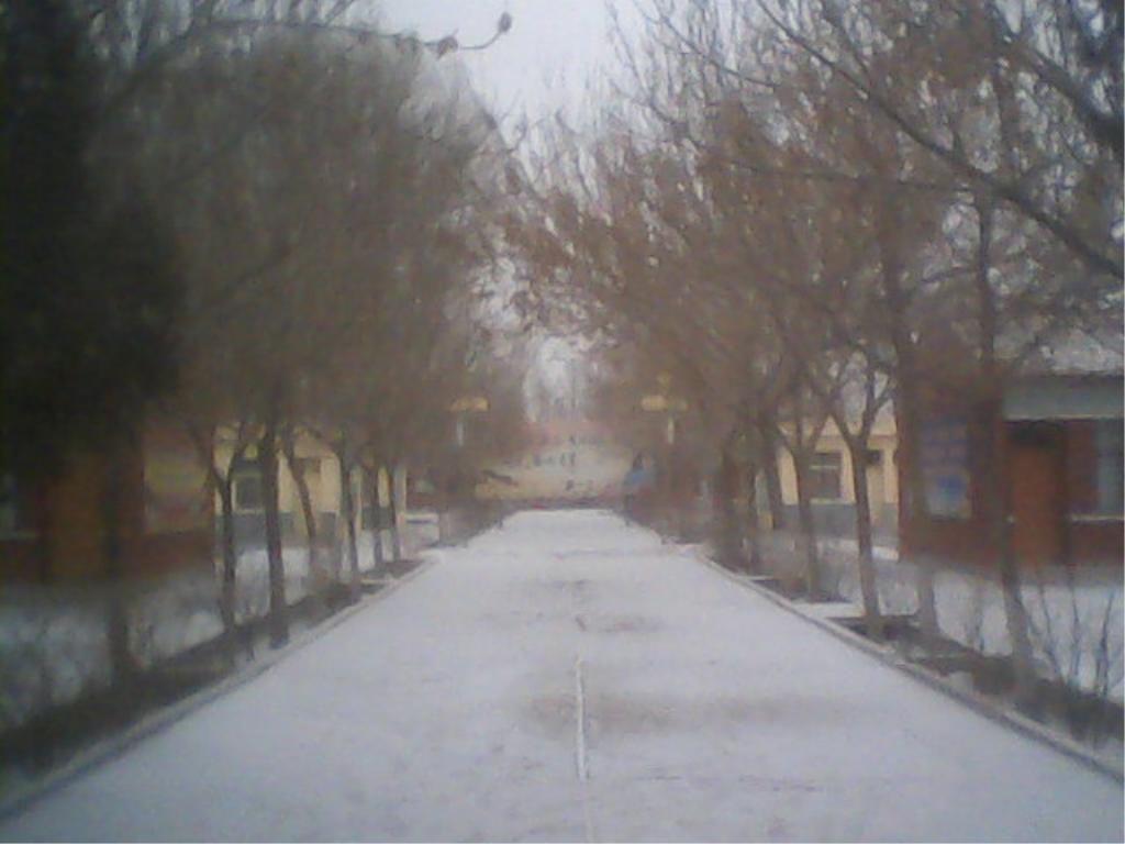 这是入冬以来的第一场雪,虽然只是一场小雪,但对于我们这个风沙肆虐的民勤来说,已经是上天的特别眷顾了。校园里一片雪白的天地,那马路已经被雪覆盖了,那马路两旁的树木上也有了片片雪花。