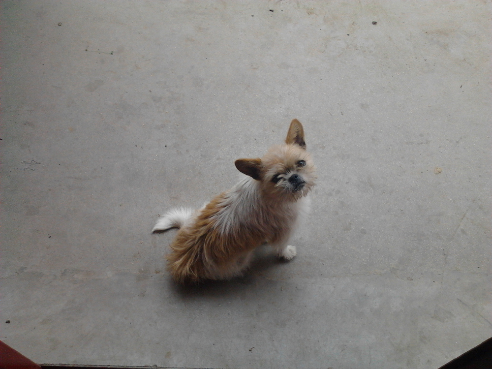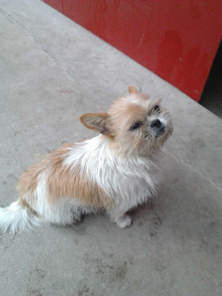 我家养了一条非常可爱的狗狗,肥胖的身躯上有黄褐色和白色的茸毛,小小的鼻子总是爱四处闻闻有没有好吃的东西,它跑起来时毛茸茸的尾巴总是竖起来一摇一摆的,非常可爱。