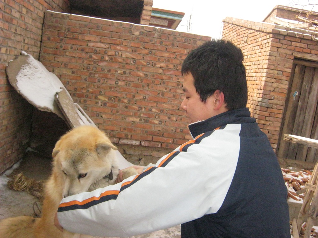 每当外人从我家那东西时,它特别凶猛,使劲往前扑跳,让人毛骨悚然,每当邻居来我家时,我的父母都会把它阻止住,不让它扑跳,它虽然有时候很凶猛,让人害怕,但它温和的时候,也很讨人喜爱,当我命令它伸出爪子时,它都会乖巧地伸出,有时候,我把它的两条腿搭在我的肩膀上跟它玩,它总是舔我的手,我们玩得很开心,彼此之间的关系也非常好。