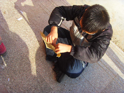 在城里,像我们这么大的男孩子有各种各样的玩具,特别是各式各样的手枪。我们没有玩具,想玩警匪游戏,只好自己叠纸手枪。