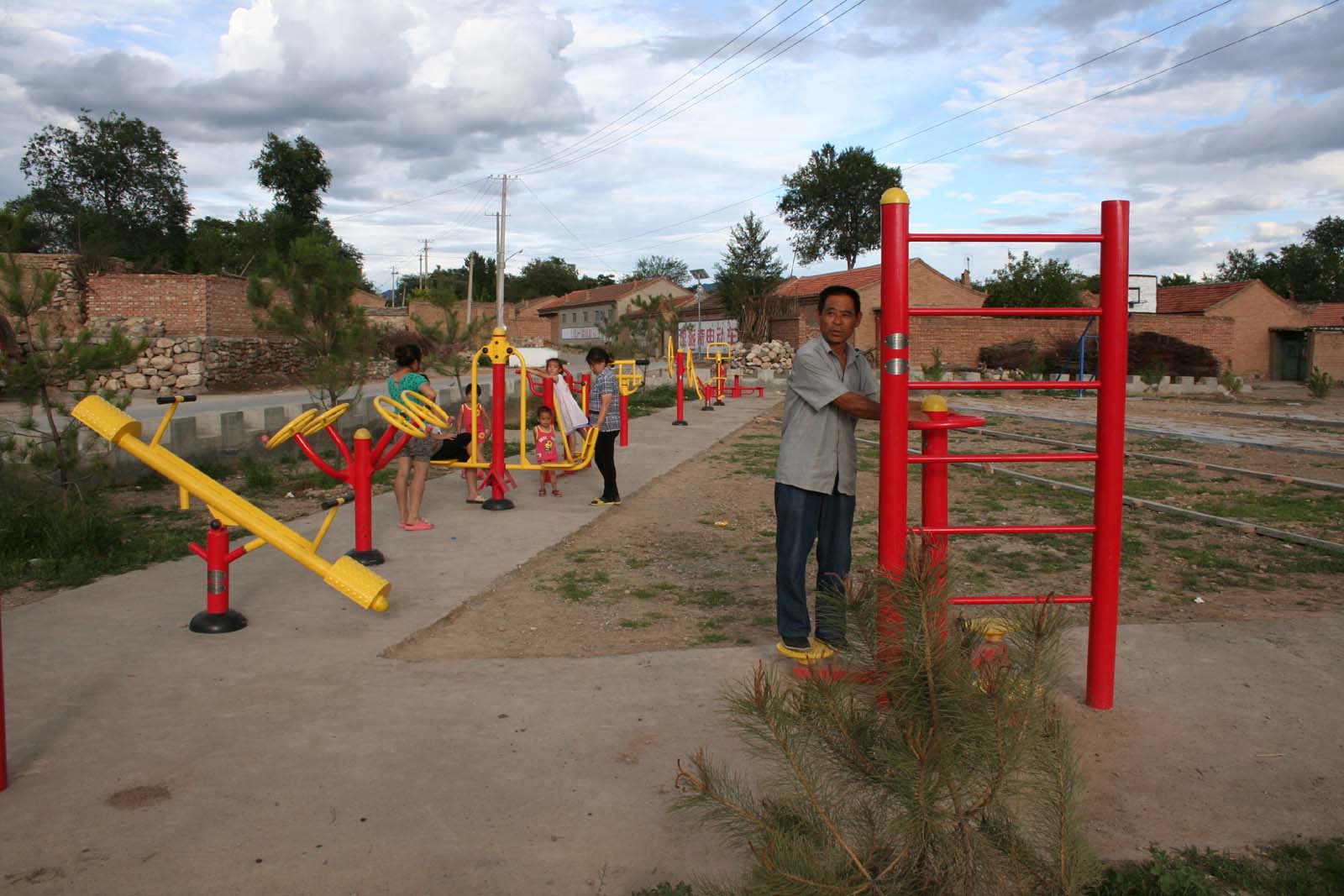 让我没有想到的是在奶奶家的门前还新修了一个健身广场,这里有很多和我们小区一样的健身器材,那边阿姨正带着小孩在这里玩,这边还有一位大爷在锻炼身体。真是太好了。