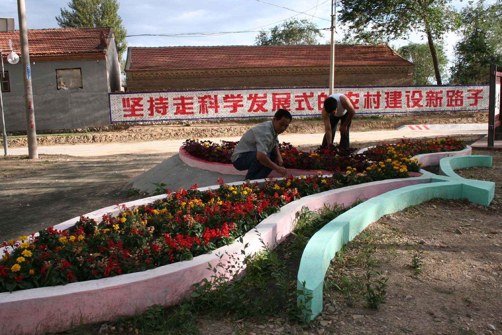 我赶紧和妈妈一起走进了村子,村里变化更大啊。这里水泥路一直修到村里,两边也装上路灯了。路的右边修了一个像花朵一样的花坛,在花坛里种满了各种各样的鲜花,有火红的串串红,有金黄的太阳花,还有娇艳的月季花,这些花儿张开笑脸欢迎我呢。