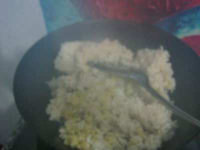 三、炒。在炒锅里放一些麻油,量要比炒菜多一些,烧到七成热,把切好的葱末、蒜末、花椒末放进去翻炒至黄色,把白面块垒倒进锅里,用铲子来回翻炒直到块垒均匀地沾上油后,放盐翻匀就可以出锅了。