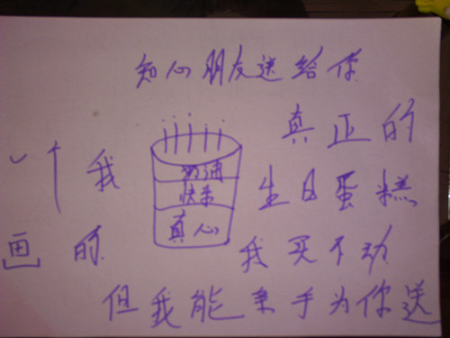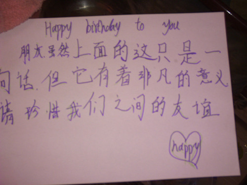 但今天我的生日过得非同寻常,不像城里人吃那样美味的蛋糕、打开生日礼物、吹五彩缤纷的蜡烛、许下一个不为人知的愿望,而则是我好朋友的一句“祝你生日快乐”,我感觉比吃蛋糕开生日聚会都开心许多,伺候我就牢记住了家人的生日,每到他们的生日时,我就会对他们说声“生日快乐”,他们都会很高兴,这种感觉很快乐。