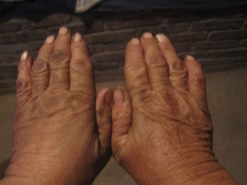 我奶奶是一个农家老人,瘦骨磷峋,皮肤又粗又黑,手上青筋绽出,骨结粗大,最特别的是,她的手指不像常人那样是直得,而是弯曲的。