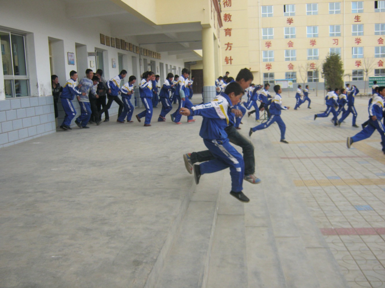 学校人群相对密集,是事故易发地点,为了培养学生逃生自救技能,确保学生生命安全,我校在星期三下午进行了校园防震安全疏散实际演练。在演练前,先由汪校长讲授了防震安全知识,接着学生回到各自教室准备演练。